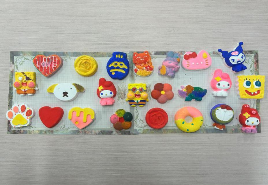 随后,活动进入“彩塑绘心”石膏彩绘环节。志愿者为同学们分发了形态各异的石膏娃娃坯体、颜料及画笔,同学们专注地在石膏娃娃表面进行涂抹、晕染创作。创作过程中,大家全身心地投入,将自身情绪融入创作之中,每件作品都展现出独有的个人特色。