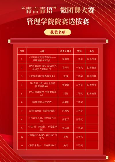 此次微团课大赛不仅为团员青年搭建了展示自我、传递信仰的平台,更推动雷锋精神在青年群体中落地生根、代代相传,激励广大团员青年以青春之我、奋斗之我,在新时代新征程中勇担使命、奋勇争先。
